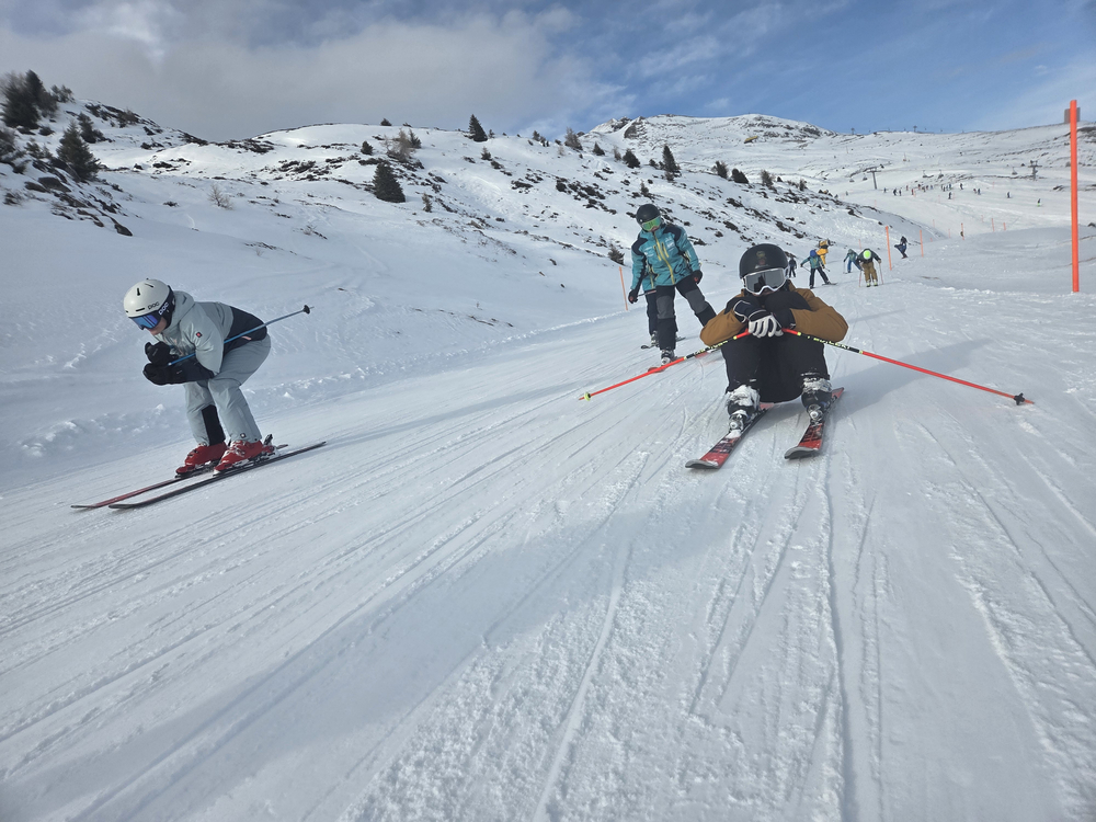 Der Nachmittag stand erneut im Zeichen des Trainings und des gemeinsamen Spaßes auf den Hängen Grüschs. Die Sonne strahlte weiterhin vom Himmel, und die Teilnehmer:innen konnten die traumhaften Bedingungen in vollen Zügen genießen.